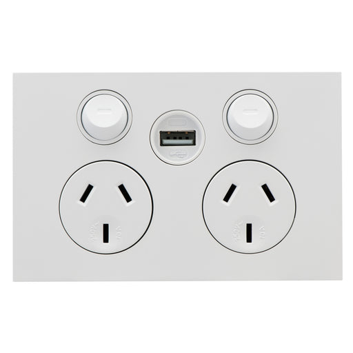 Clipsal Saturn Zen Double Power Point 10a 250v With USB Charger, Matt White