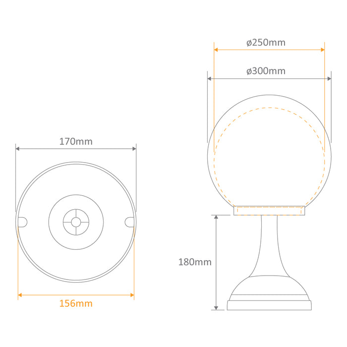 Domus Siena - 25cm Sphere Tall Traditional Pillar Mount